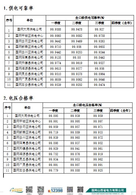 國網(wǎng)大同供電公司2025年三季度“兩率”完成情況